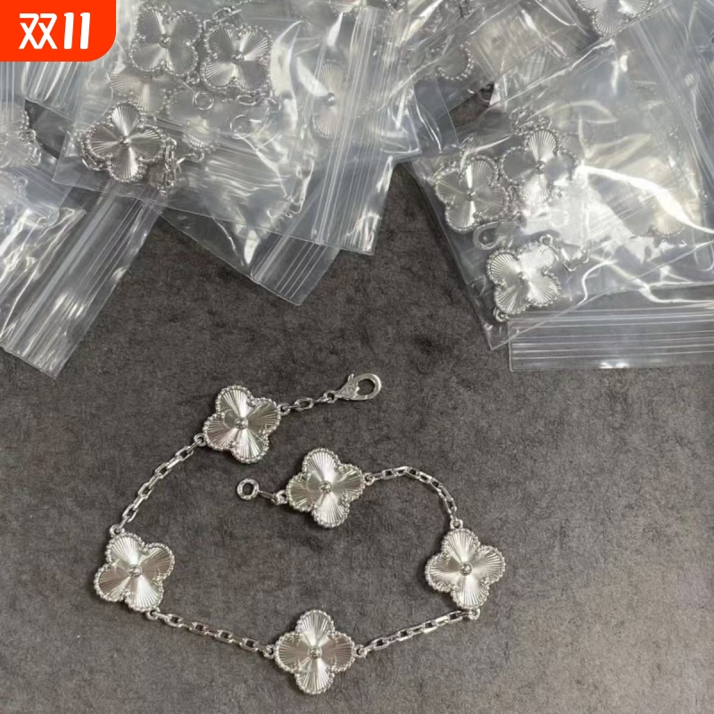 高版本五花四叶草手链女V金镀18K金圣诞镭射紫玉髓虎眼石满钻熊猫