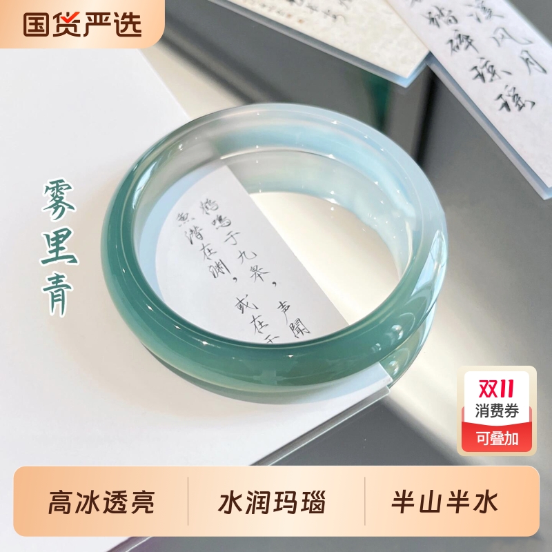天然玛瑙手镯女冰种玉髓油青白月光镯子正圈祖母绿冰透情人节送礼