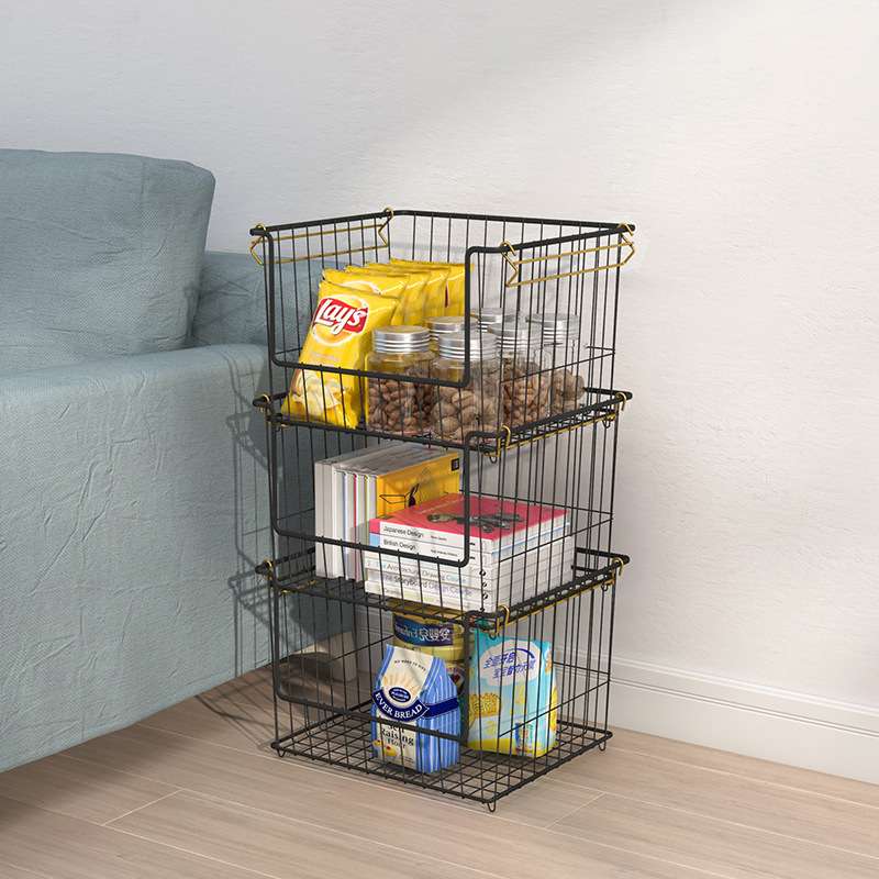厨房置物架多层落地金属铁艺收纳筐网格篮大号可叠加水果蔬菜