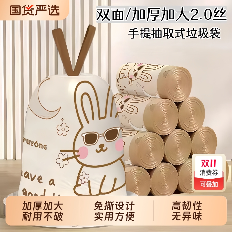 免撕120只加厚大号抽绳垃圾袋手提式家用创意塑料袋宿舍特厚大卷