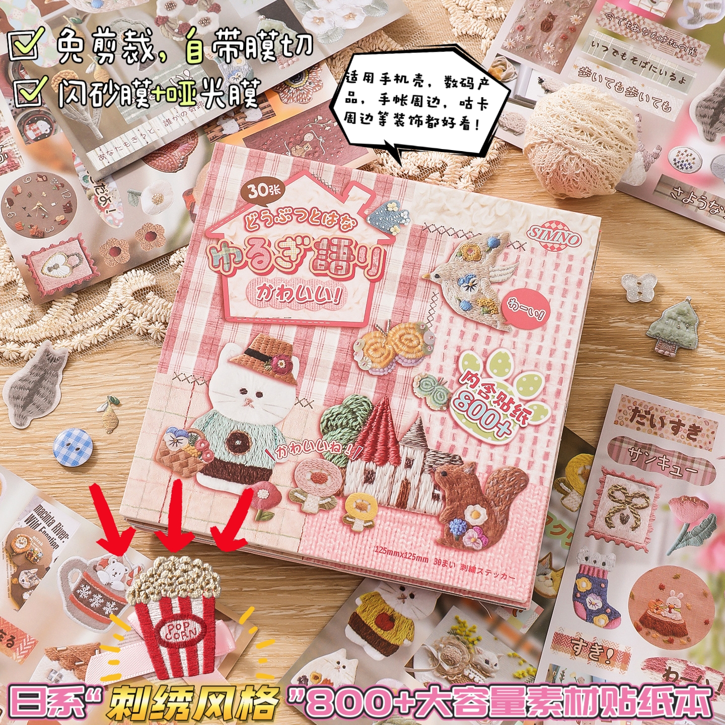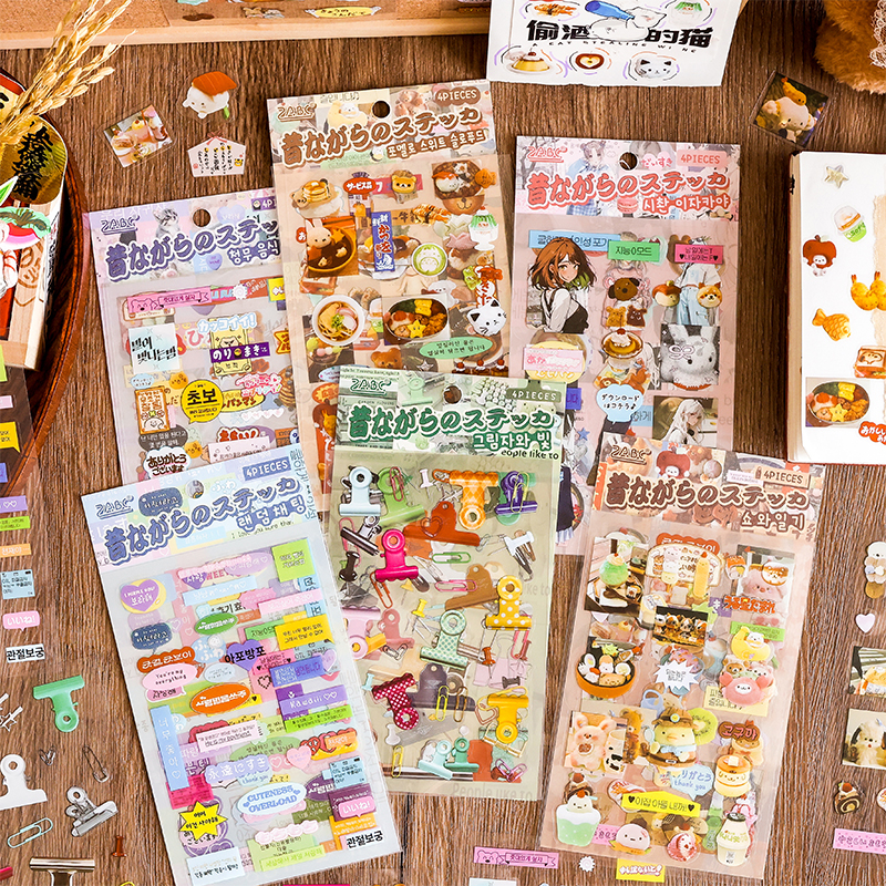 mini切膜贴纸书 时光萌物系列古早风图案diy咕卡装饰手帐卡片