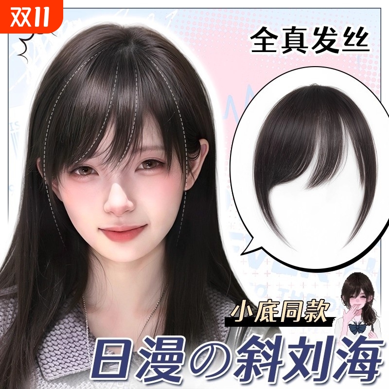 【日漫斜刘海】古早感M型空气刘海假发全真发自然前额刘海假发片