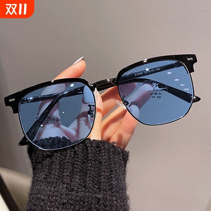 小米向前浅蓝色半框墨镜男款自动感光变色防蓝光眼镜平光太阳镜