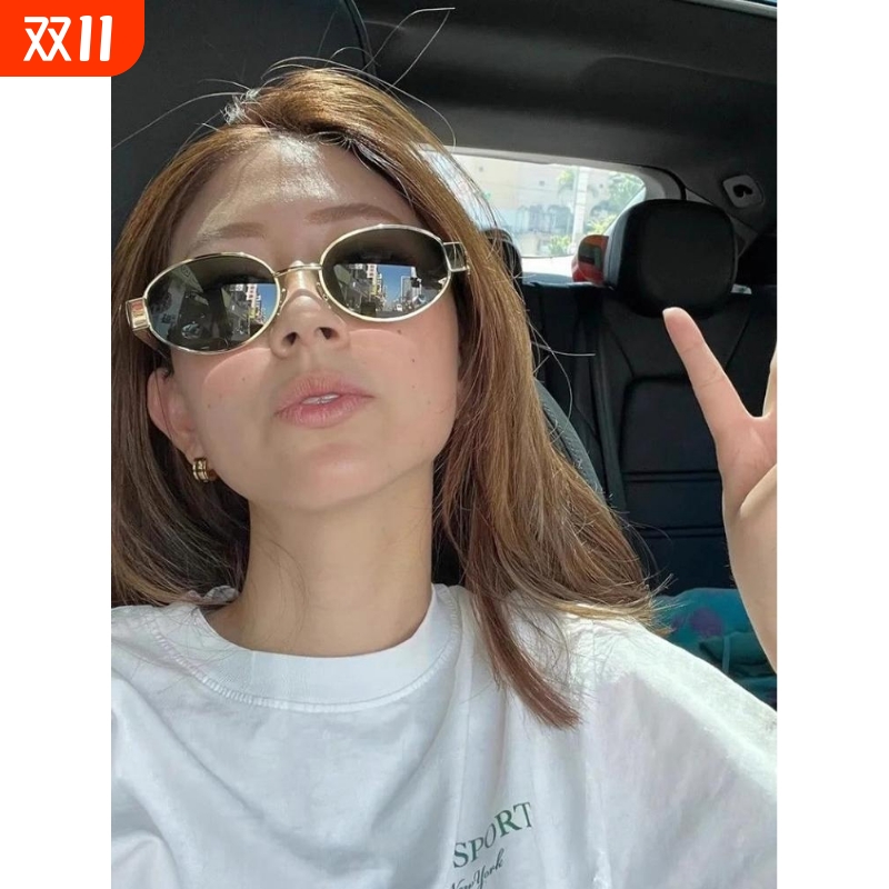 小米向前港式老钱风墨镜女时尚复古椭圆金属框眼镜偏光太阳眼镜男