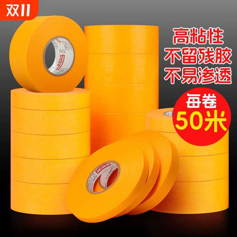 高粘美纹纸黄色和纸胶带 喷漆装修遮蔽高粘墙装修遮蔽高粘分色纸