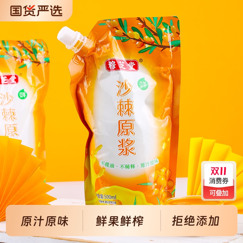 沙棘原浆野生非内蒙高原小果纯100沙棘汁含油500ML官方旗舰店