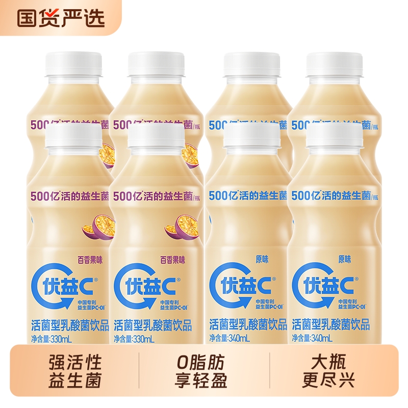 优益C原味强活性益生菌乳酸菌饮料瓶装340ml*8瓶百香果活菌