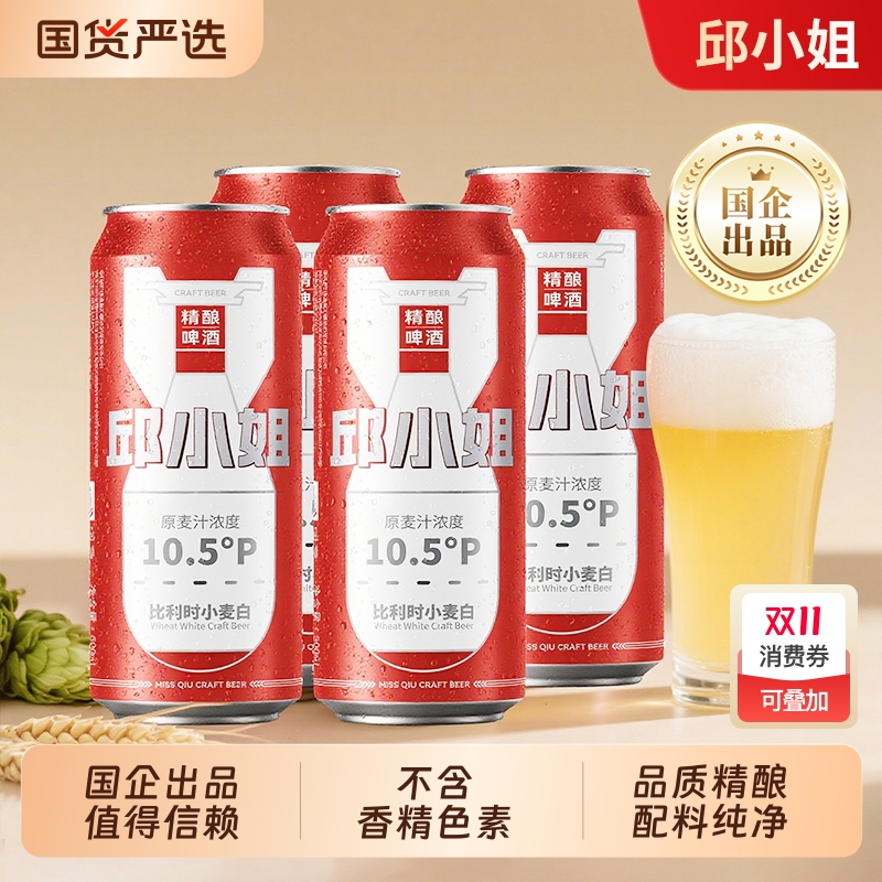 邱小姐精酿啤酒比利时小麦白10.5°P啤酒500ml*4罐 国企