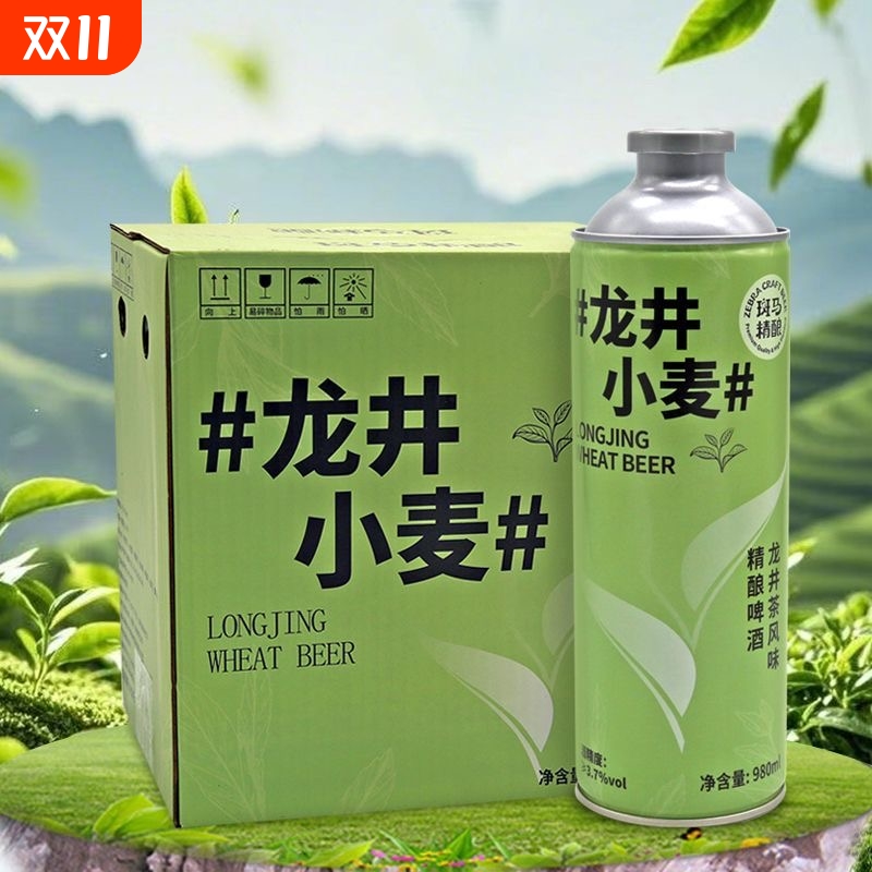 斑马精酿龙井小麦啤酒龙井茶风味中式精酿茶啤酒980ml大罐装整箱