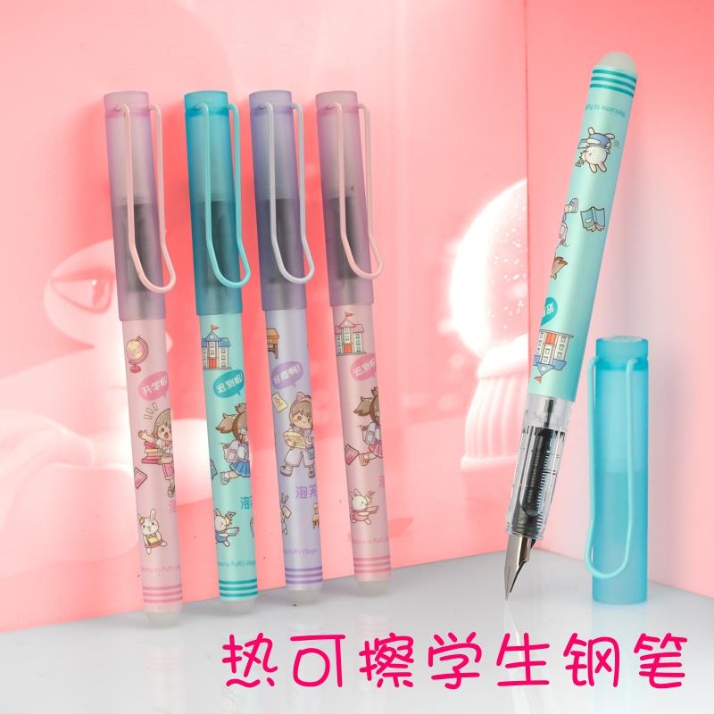 依人热可擦泡芙妹妹明尖女生练字EF0.38蓝色墨囊魔力大尖可擦钢