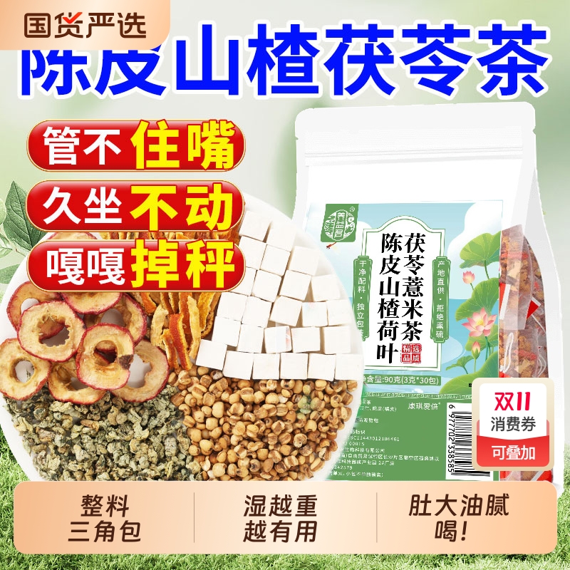 养益君山楂陈皮茯苓茶山楂伏苓颗粒薏湿排去湿气毒祛除湿养生茶包