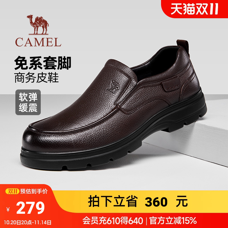 骆驼男鞋2025秋季新款牛皮套脚中年爸爸鞋增高经典商务休闲皮鞋男