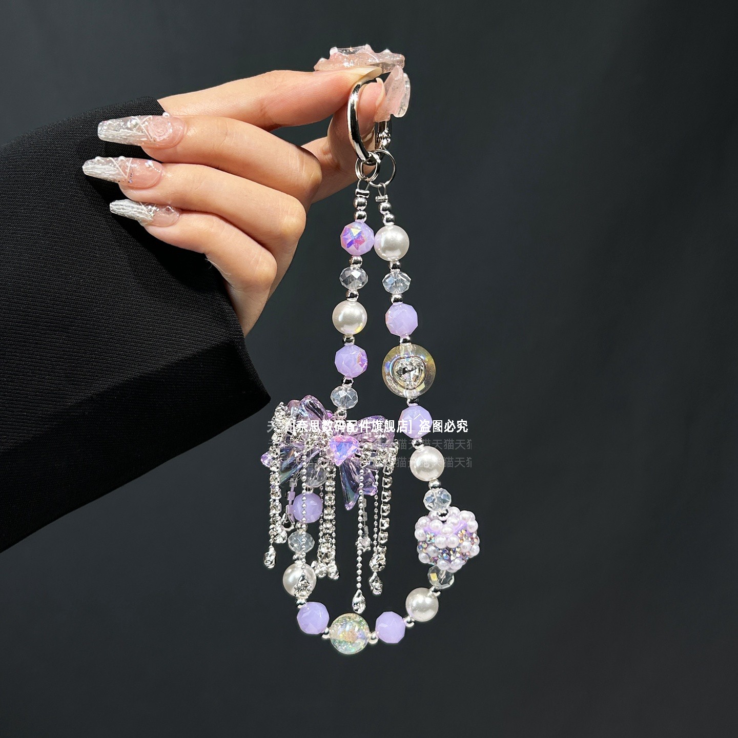 梦幻紫色星空手机链爆闪人鱼姬挂链手提溜旋转花朵吊坠手链精致水晶蝴