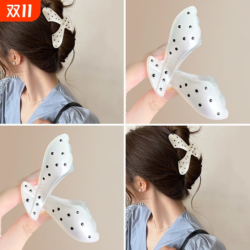高级感法式波点千金抓夹女2025新款小众甜美后脑勺鲨鱼夹发夹头饰