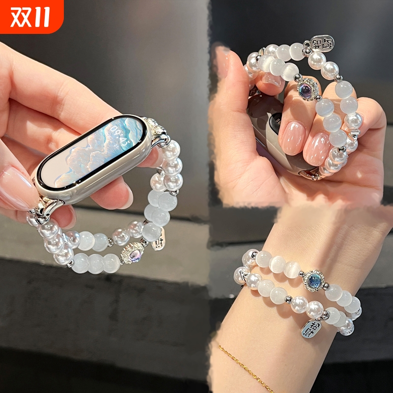 适用小米手环10表带新款碎银珍珠手链智能小米手环9表带千金感珍珠