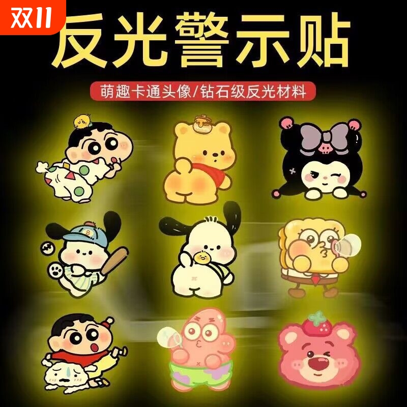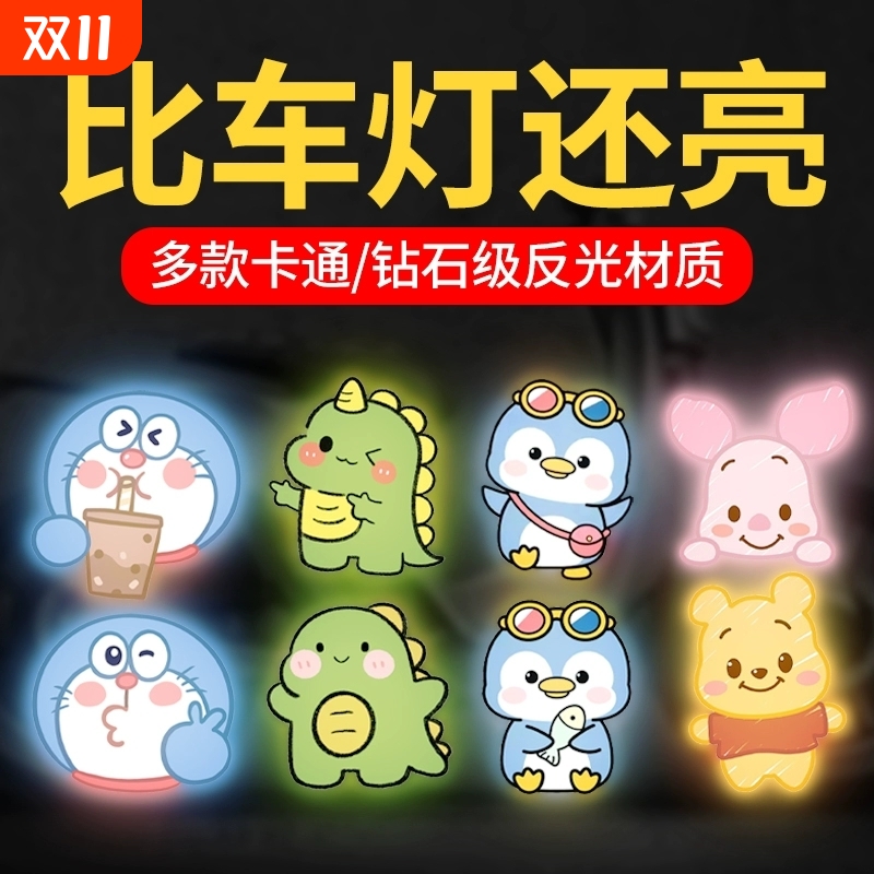 反光贴卡通摩托车夜间警示贴个性创意卡通人物电动车遮挡划痕贴纸