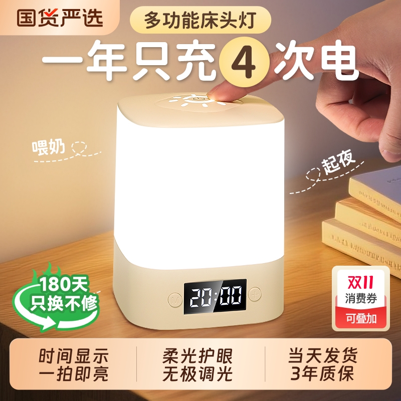 时钟小夜灯卧室床头台灯超长续航
