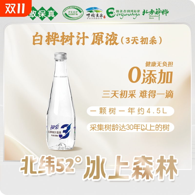 北方神桦天然白桦树汁100%原汁原液三天初采338ml*12瓶植