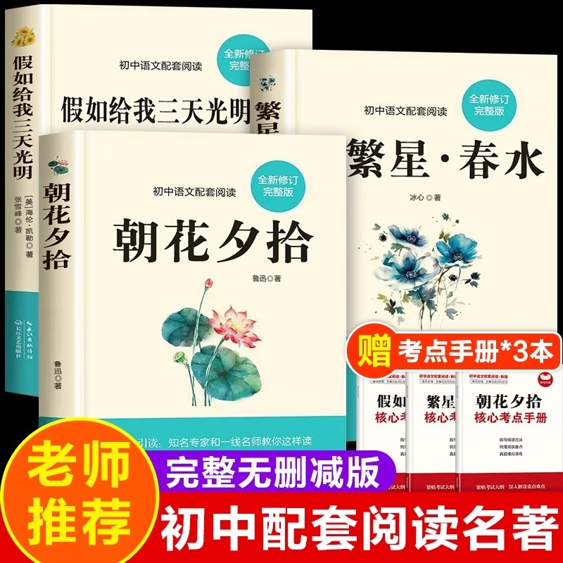 七年级上册必读的课外书 朝花夕拾鲁迅+繁星春水+假如给我三天光明