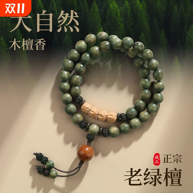 双圈手持天然老绿檀木中国风