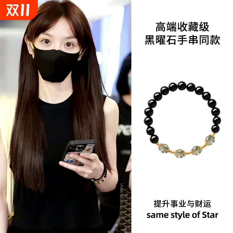 田曦薇同款黑曜石绿幽灵手串