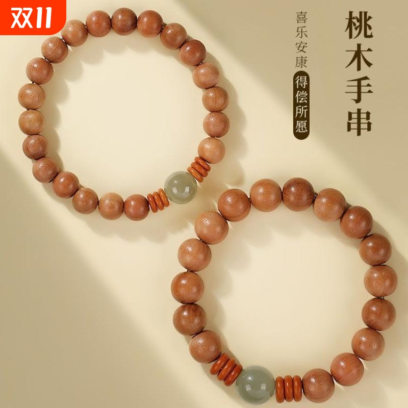 新中式普陀山天然老桃木国风手串情侣男女礼物原创本命年手链佛珠