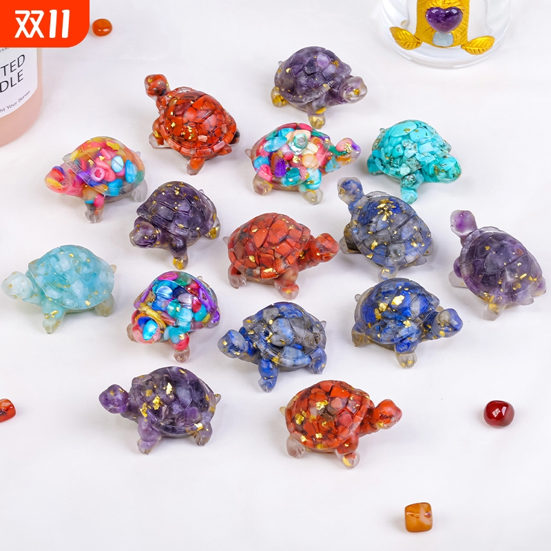 润阳珠宝水晶碎石滴胶小乌龟摆件