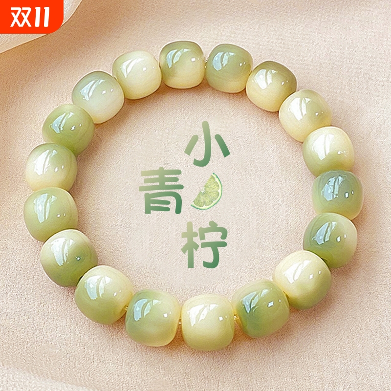 小青柠白玉菩提根天然手串盘玩绕指柔女学生文玩菩提子佛珠手链男