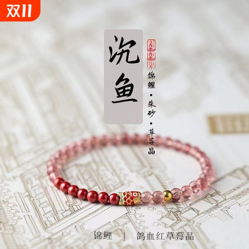 天然朱砂草莓晶手串女款锦鲤考试中高考上岸手链好运男士国潮礼物