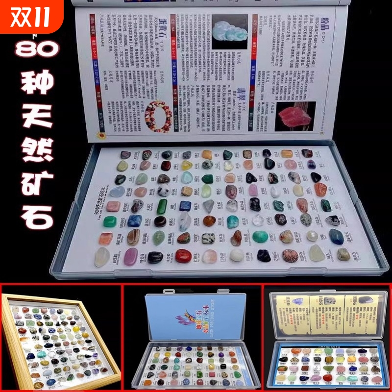 36-80种天然水晶矿石标本盒矿物晶体摆件观赏孩子探索学习相框