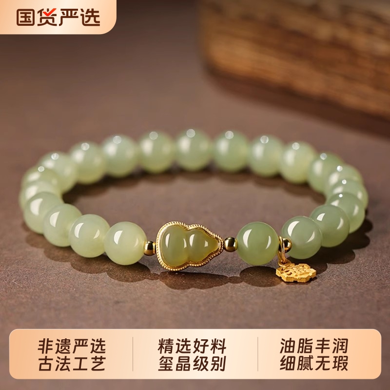 天然和田玉手串女款手链晴水玉石福禄小葫芦手串小众轻奢精致手饰