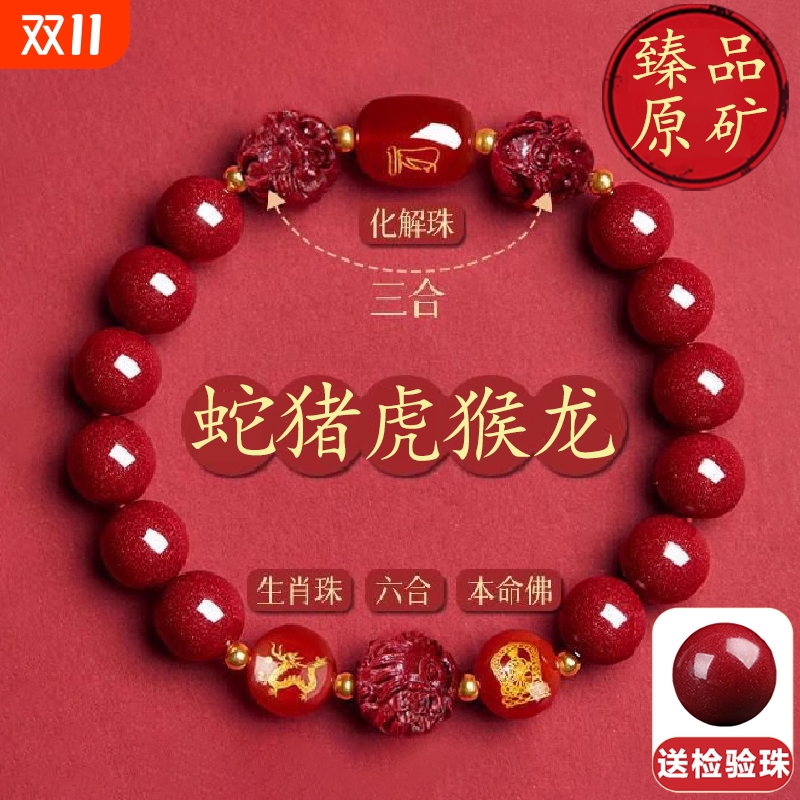 正品天然原矿朱砂手串男龙蛇年本命年手链女三合六合转运珠护身符