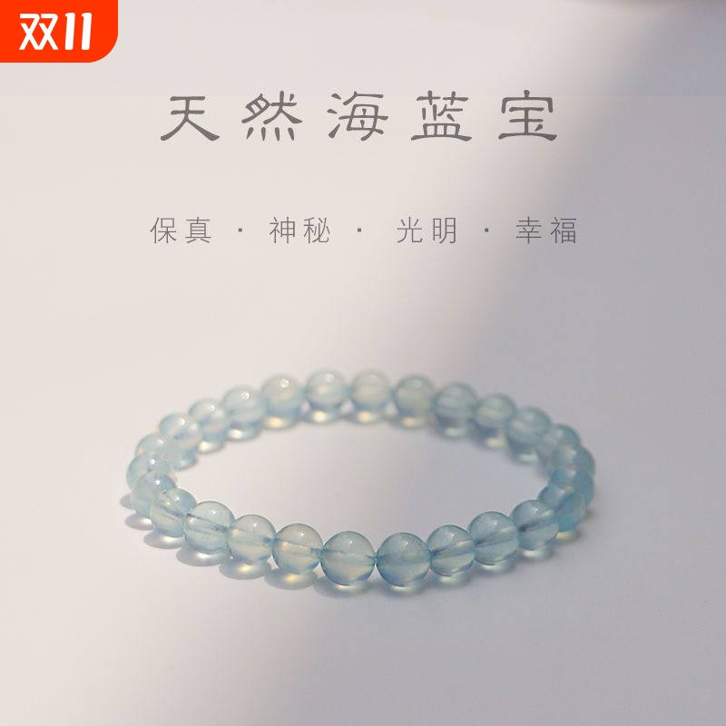 新款天然冰种天然魔鬼海蓝宝补水手链水晶蓝色手串简约小众饰品