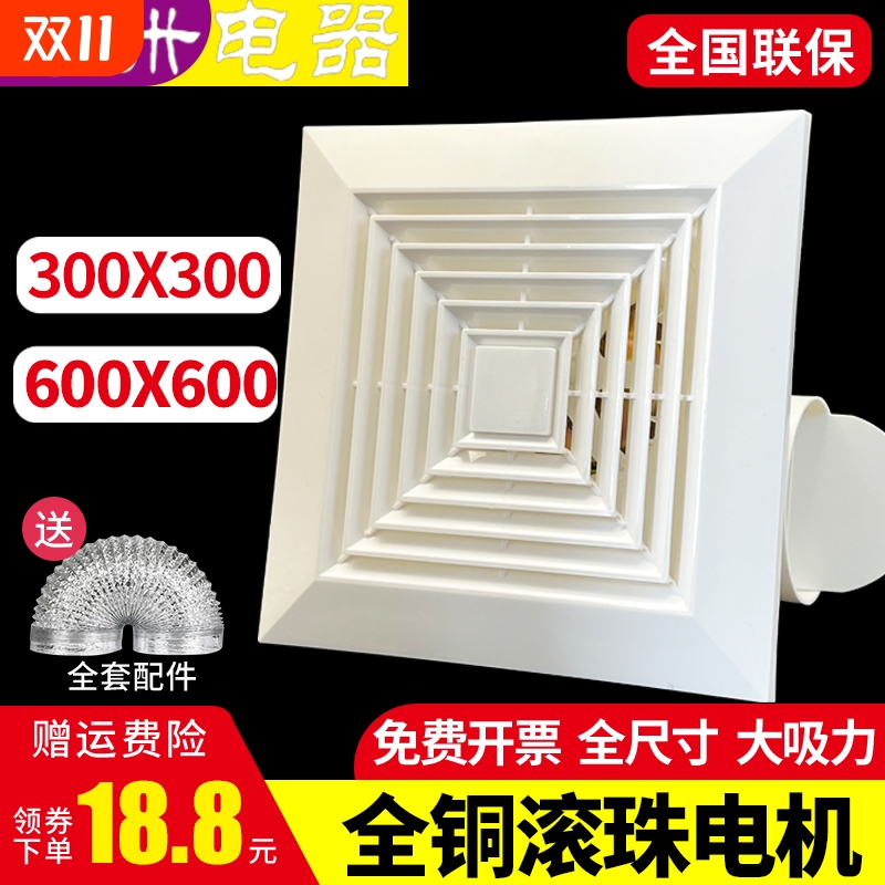 集成吊顶300x300换气扇强力静音吸顶排气扇厨房卫生间天花排风