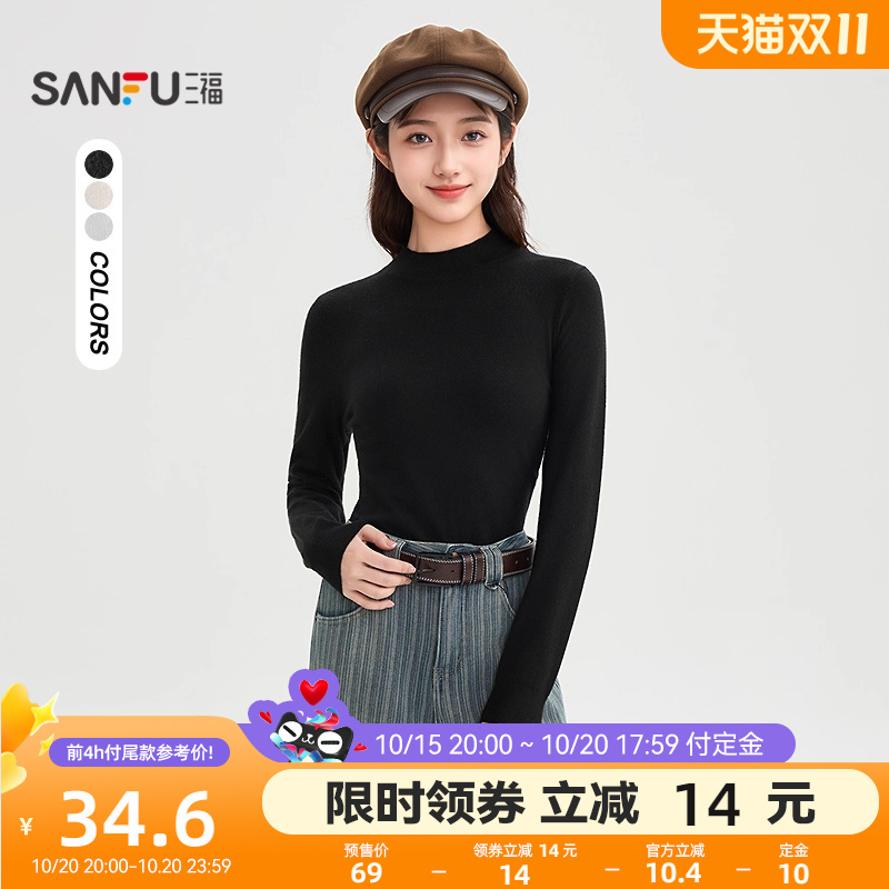 三福打底衫2025新款冬季小中领内搭针织衫简约纯色上衣女装509