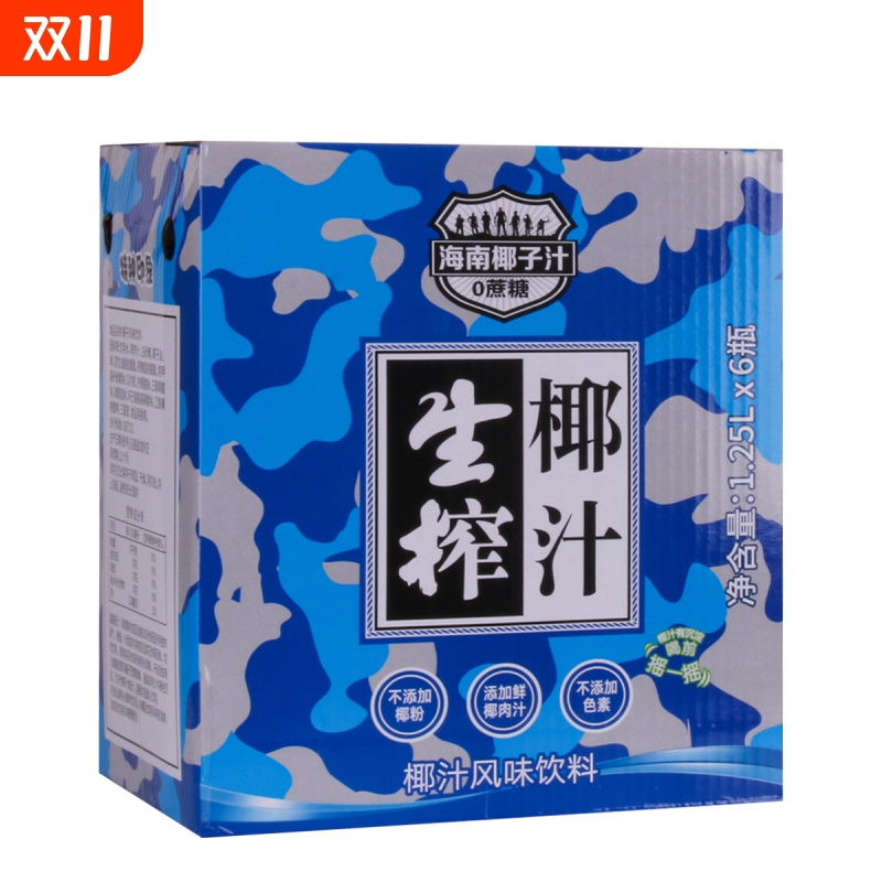 海南正宗生榨椰子汁大瓶饮料整箱1.25L*6瓶/2瓶奶礼箱装生榨