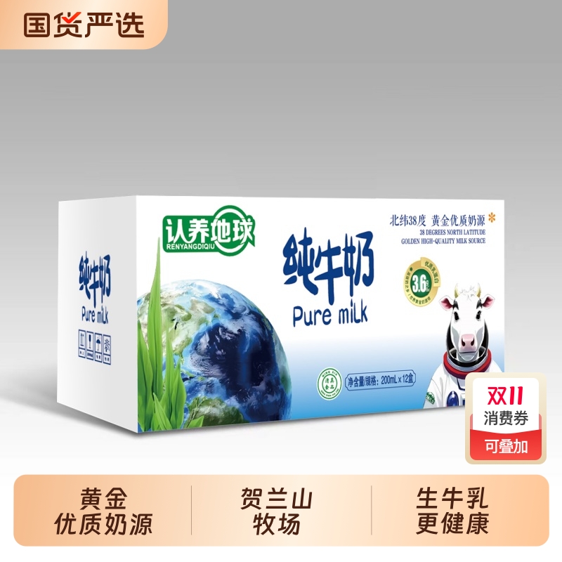认养地球4.0g优质蛋白黄金优质奶源纯牛奶200ML*10盒儿童