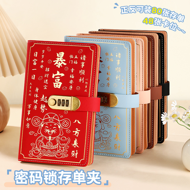 2025新款密码锁暴富存单收纳本网红定期支票收纳册多功能防水防火