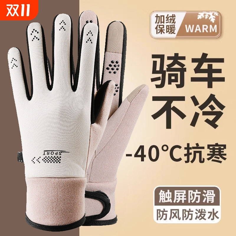 手套女2025冬季新款骑车保暖可触屏骑行电动车加绒防寒东北防风冬