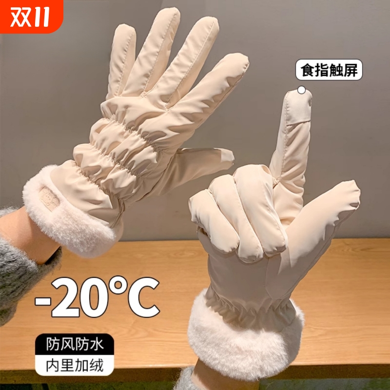 毛茸茸手套女冬季2025新款潮可触屏加绒保暖防寒骑行红色骑车白色