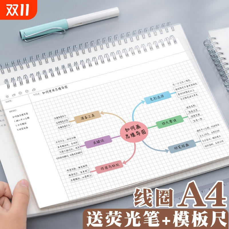 思维导图笔记本子活页本子大学生考研专用本A4格子横式网格本6孔可
