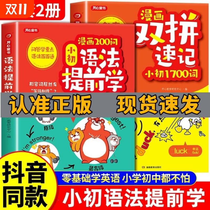 开心漫画200问小初语法提前学双拼速记1700词小学初中英语单词