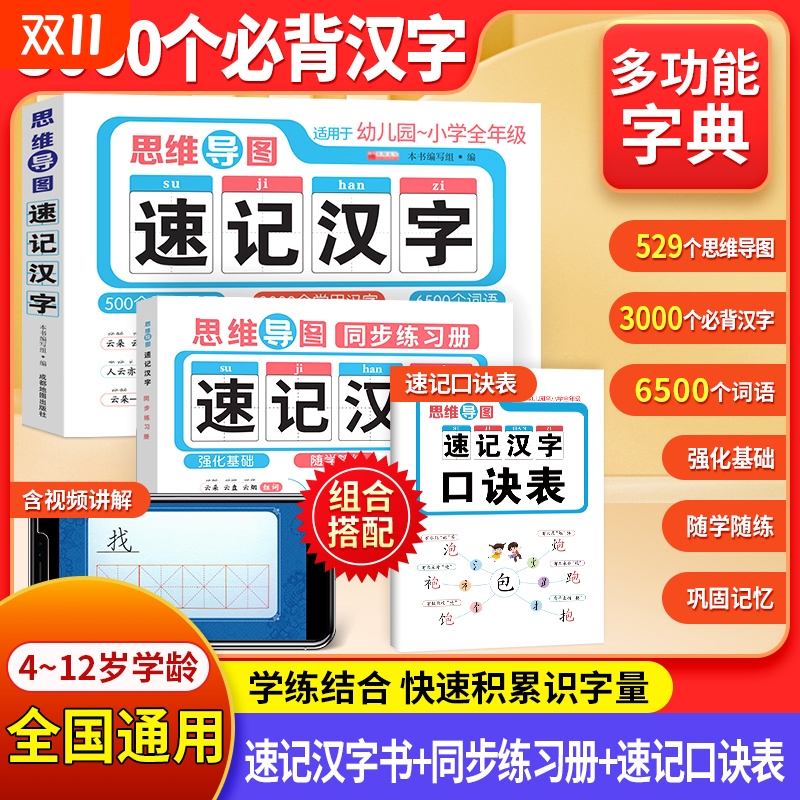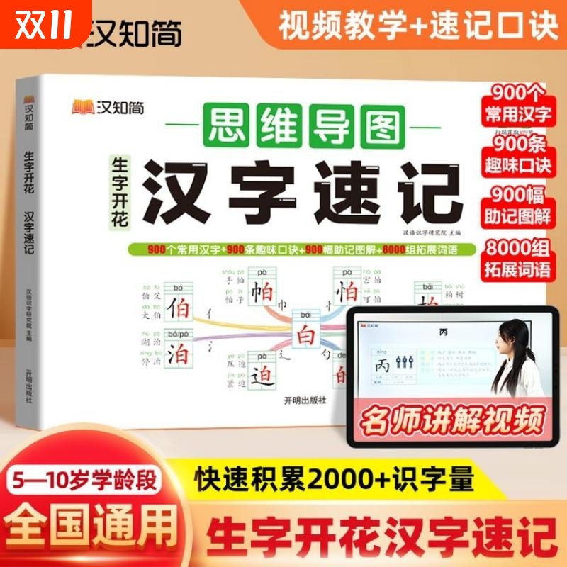 新版思维导图速记汉字3000字小学生汉字速记速写识字书幼儿启蒙认