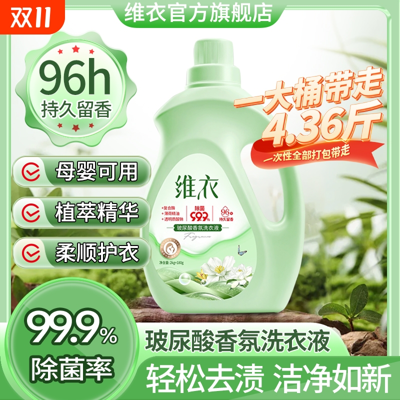 玻尿酸香氛洗衣液深层洁净强力去污柔顺抑菌96小时持久留香