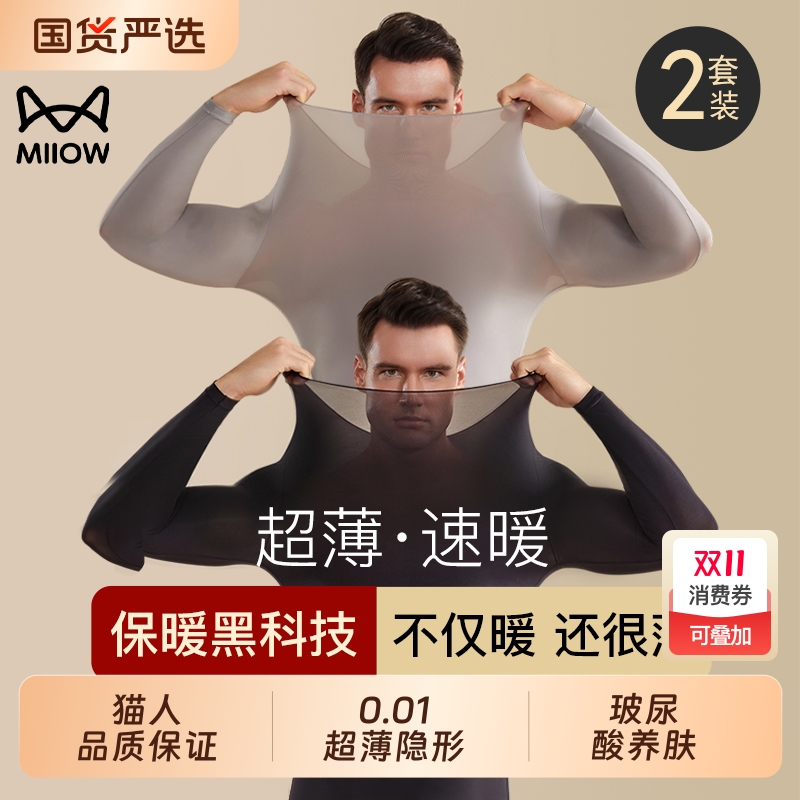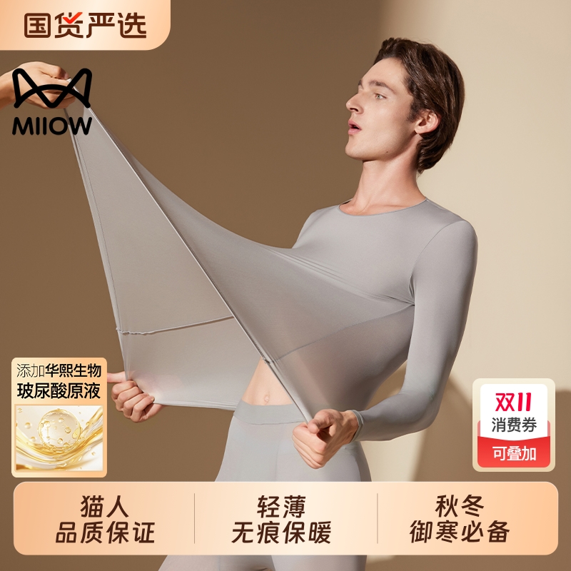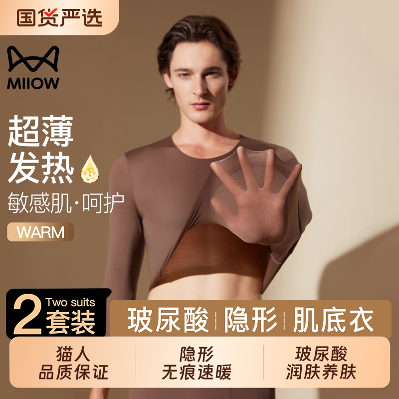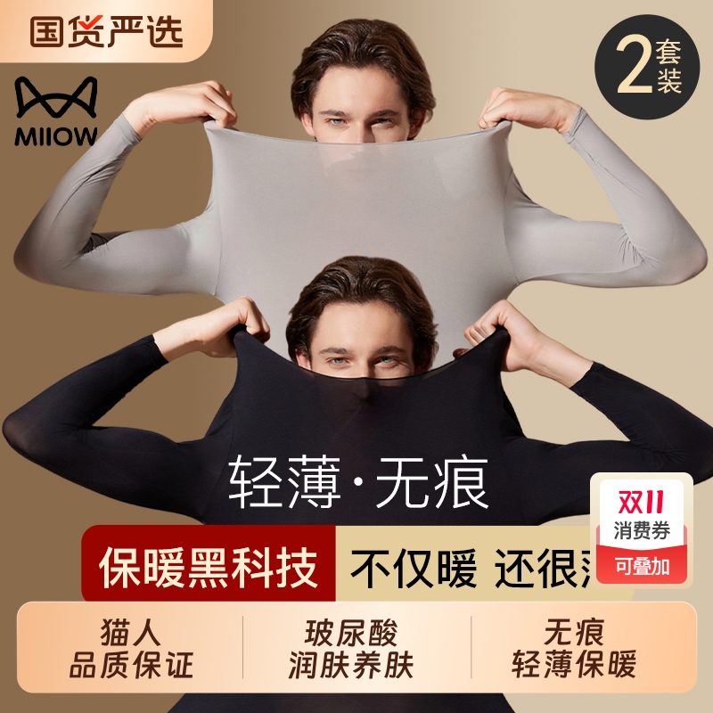无痕保暖内衣女士冬季超薄秋衣秋裤套装发热打底玻尿酸美肤肌底衣