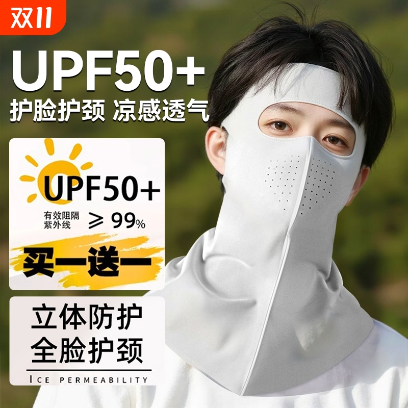 玻尿酸全脸防晒面罩2025新款防紫外线冰丝透气脸基尼遮阳护颈面罩