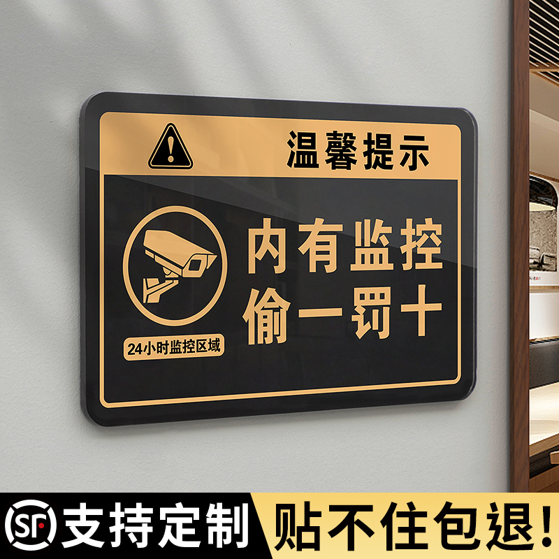 亚克力内有监控温馨提示牌请您保管好贵重物品你已进入24小时视频区