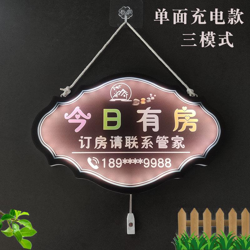 今日有房发光充电营业中挂牌今日已满房牌客房己满提示牌酒店民宿