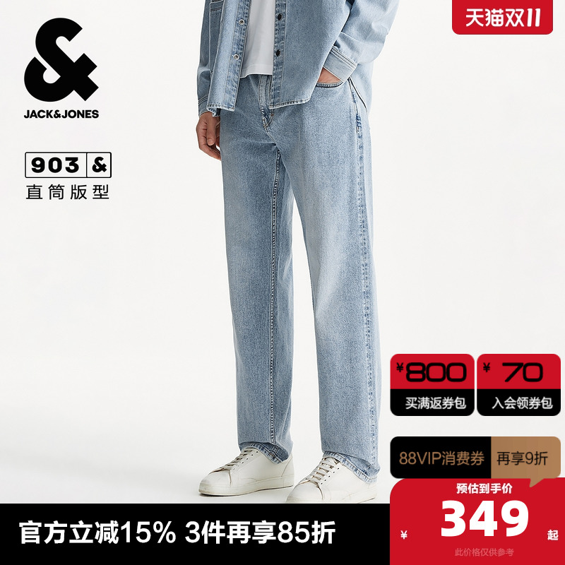 903杰克琼斯男装牛仔裤秋季2025年新款贴袋后腰皮标直筒裤子长