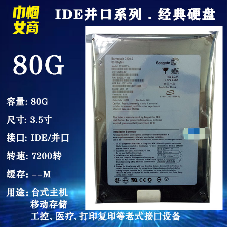 全新希捷7200转3.5寸IDE并口80G台式机电脑硬盘老式工业